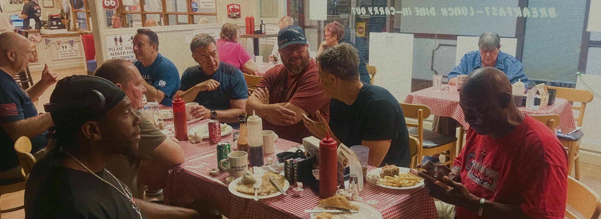 Basecamp meets monthly at 9:00 AM (locations vary) to fuel up—bacon included—and gear up for life's climb. Through honest conversation, Scripture, and brotherhood, we help each other push UPward with God's strength and a solid rope team.